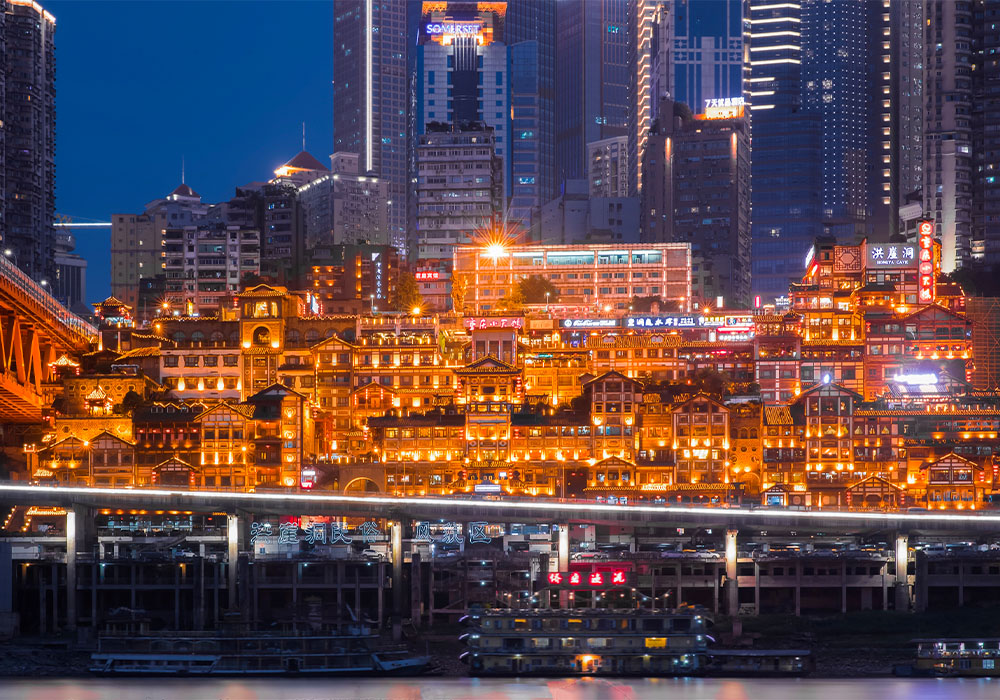 Phố Cổ Hồng Nhai Động – Trùng Khánh, nổi bật nhờ khu phố cổ 11 tầng lầu với mái ngói rêu phong, hoa văn chạm trổ, nằm ở khu trung tâm thương mại thành phố Trùng Khánh, bên bờ sông Dương Tử, là điểm bờ sông giao nhau của hai con sông Trường Giang và sông Gia Linh. Điểm đến này còn đặc biệt nổi tiếng vì sự lung linh huyền ảo như bối cảnh của bộ phim “Vùng đất linh hồn”. Về đêm, Hồng Nhai Động được thắp sáng bởi những ánh đèn ấm áp, soi bóng xuống mặt nước giống như một khu chợ nổi giữa các toà nhà chót vót. Quý khách có thể chiêm ngưỡng khung cảnh đẹp và lãng mạn này từ nhiều góc độ.